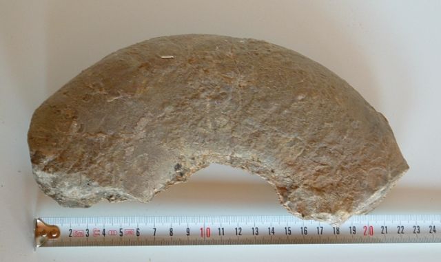 Como curiosidad y aunque no se trata de un fosil, se incluye la foto de una obra cerámica encontrada en La Aldea y que representa la cabeza de Cristo (puede verse en el Museo de Salas) |