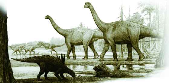 Hace aproximadamente 160 millones de años, durante el periodo Jurásico, el actual territorio que atraviesan el río Arlanza y sus afluentes, era un delta cubierto por un extraño bosque tropical de helechos gigantes. En sus orillas vivían los dinosaurios. Estos colosales reptiles, terópodos, saurópodos y ornitópodos, dejaron impresas, sobre el lodo, las huellas y los rastros de sus correrías. Con el tiempo y después de fosilizarse, al azar y la acción de los elementos acabarían descubriéndolas. También árboles, plantas y pequeños animales, nos dejaron constancia de su existencia a traves de la petrificación (ver proceso de fosilización). |